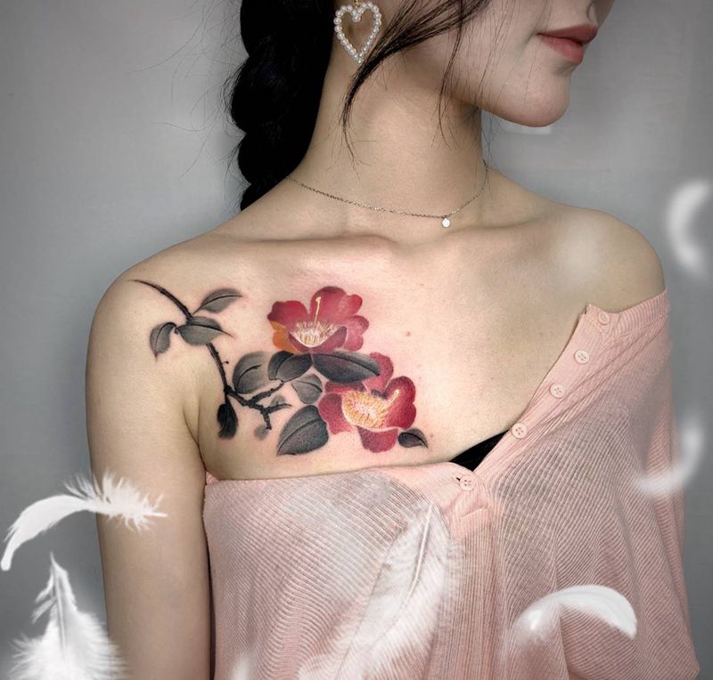 • 女性大花胸纹身_43张霸气漂亮的女性大花胸纹身图案作品