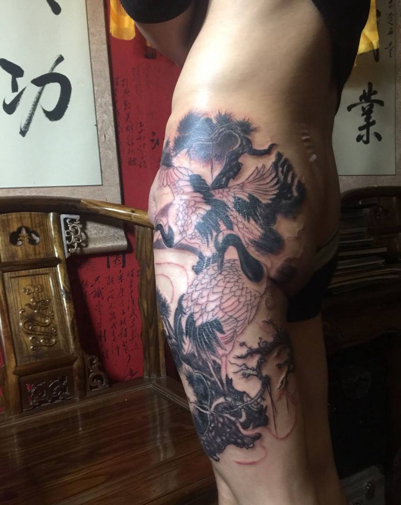 • T网红王老大花腿龙纹身图片_腿部新传统纹身图案