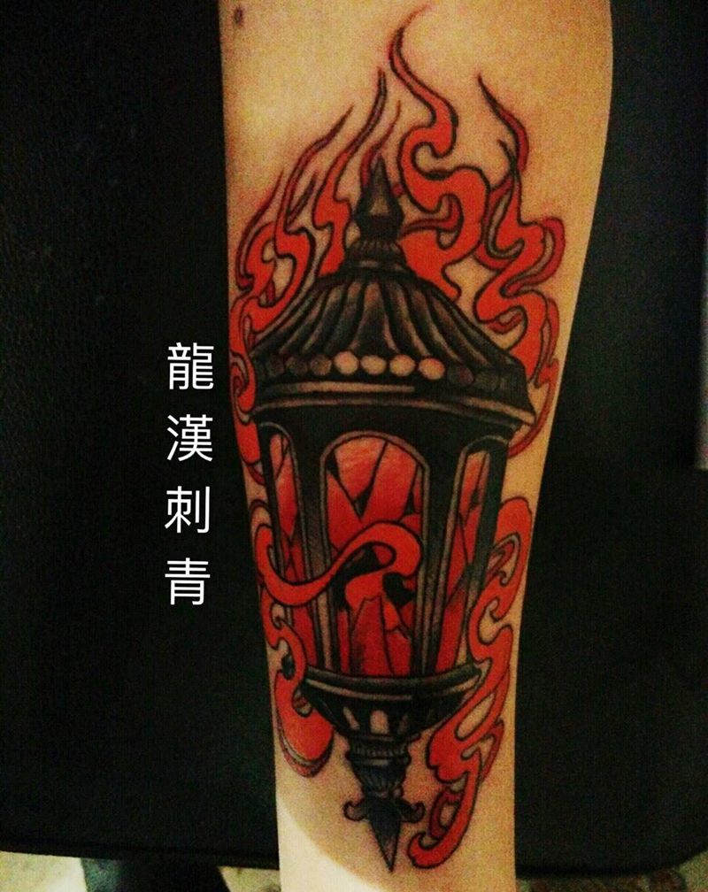 • T包小腿吹火男+阿多福纹身图片_腿部老传统新传统吹火男阿