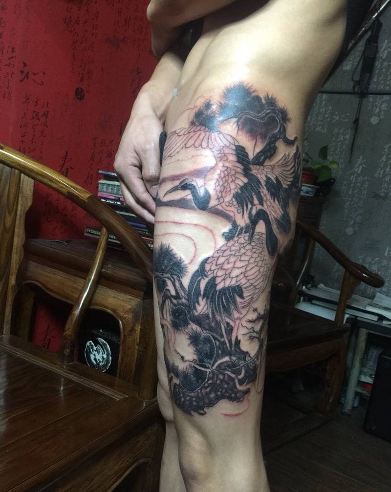 • T网红王老大花腿龙纹身图片_腿部新传统纹身图案
