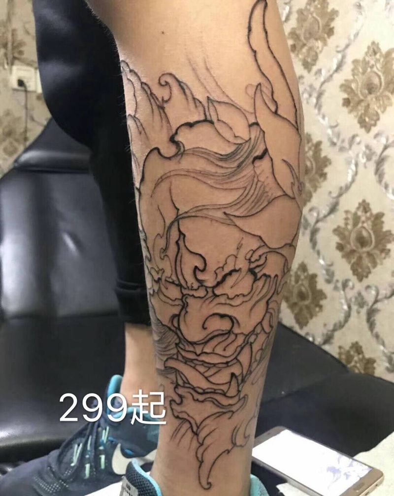 • T网红王老大花腿龙纹身图片_腿部新传统纹身图案