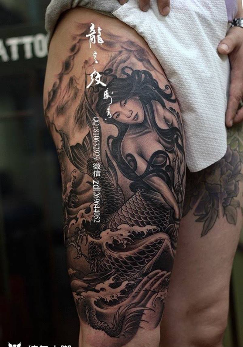 当前位置: 首页 >江苏省苏州市纹身店-龙之纹刺青纹身图案>美人鱼和龙包大腿纹身图片
