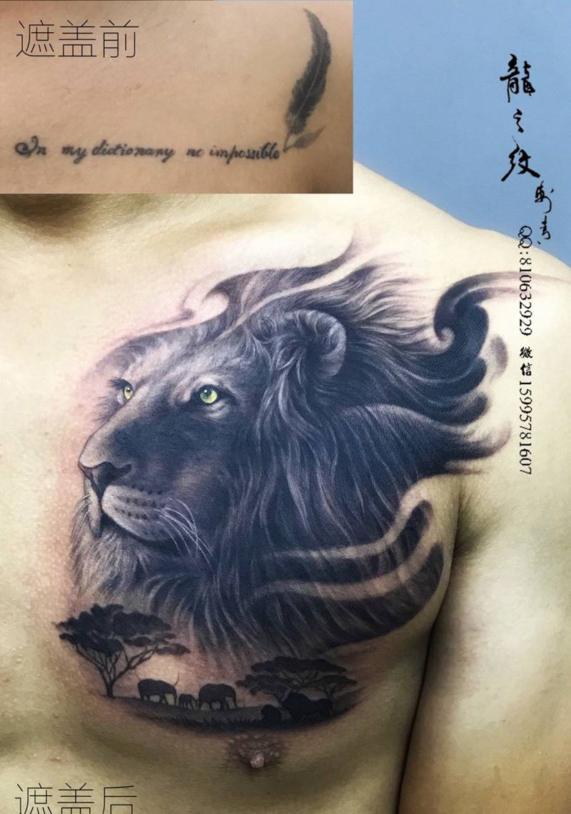 狮子纹身纹身图片_成品胸部写实动物龙之纹刺青纹身图案
