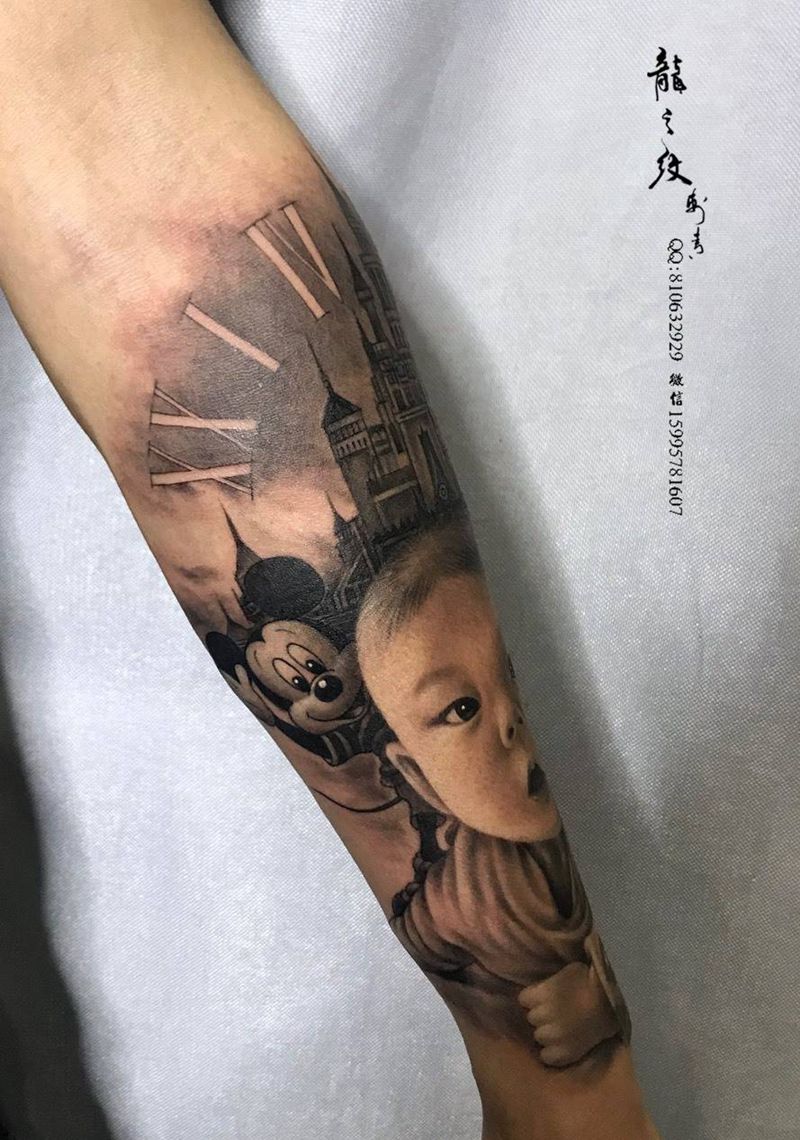 小宝宝肖像纹身图片_成品手臂肖像人物龙之纹刺青纹身图案