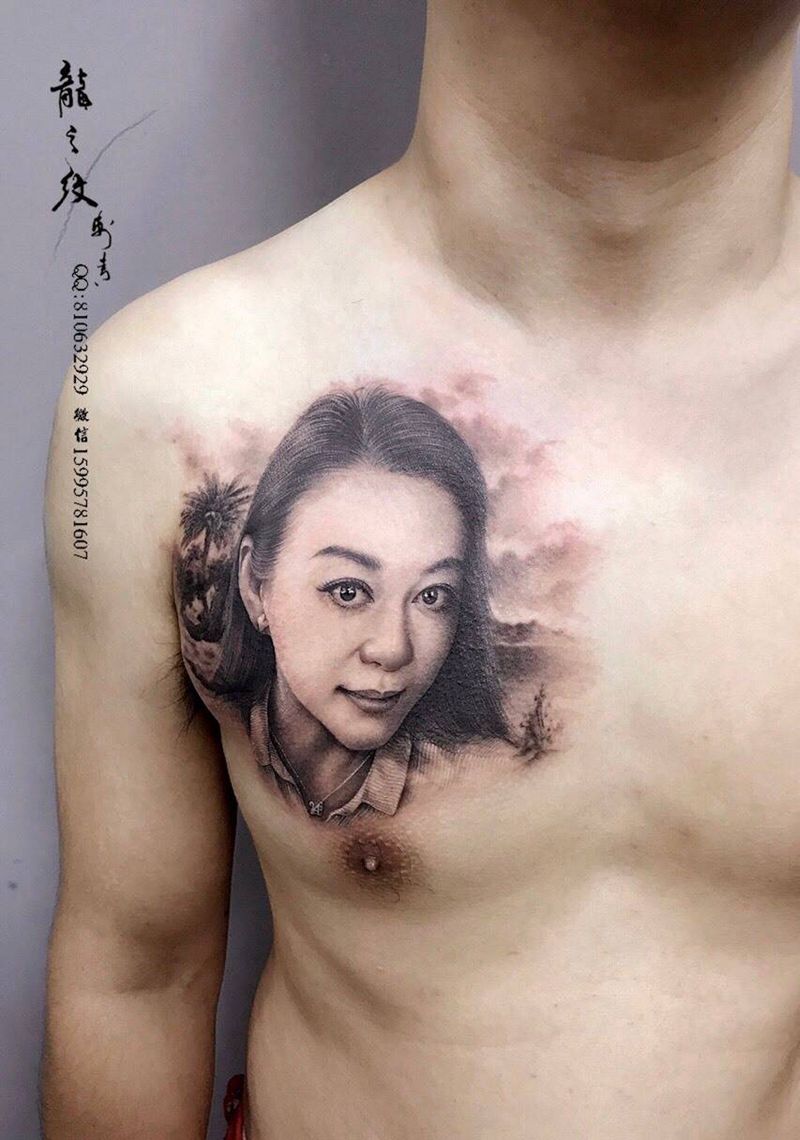 肖像文身纹身图片_成品胸部肖像人物龙之纹刺青纹身图案