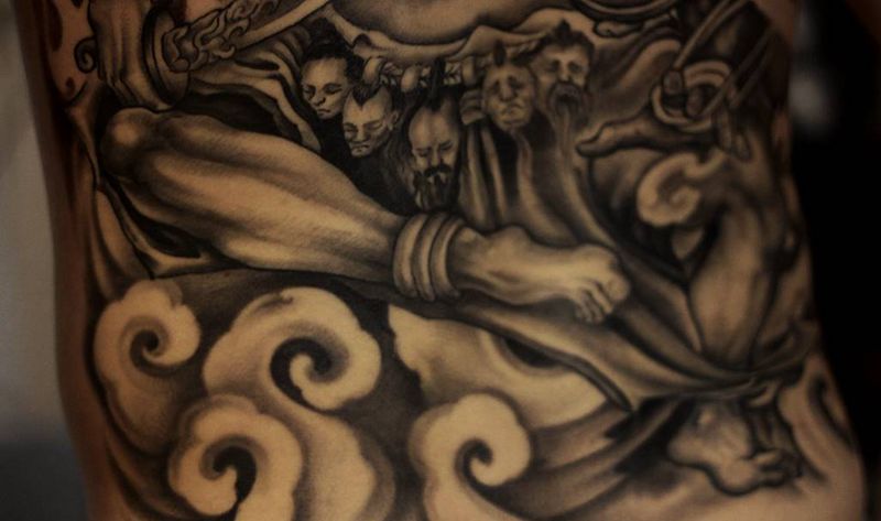 • T云龙九郎纹身图片_背部老传统云龙九郎纹身图案