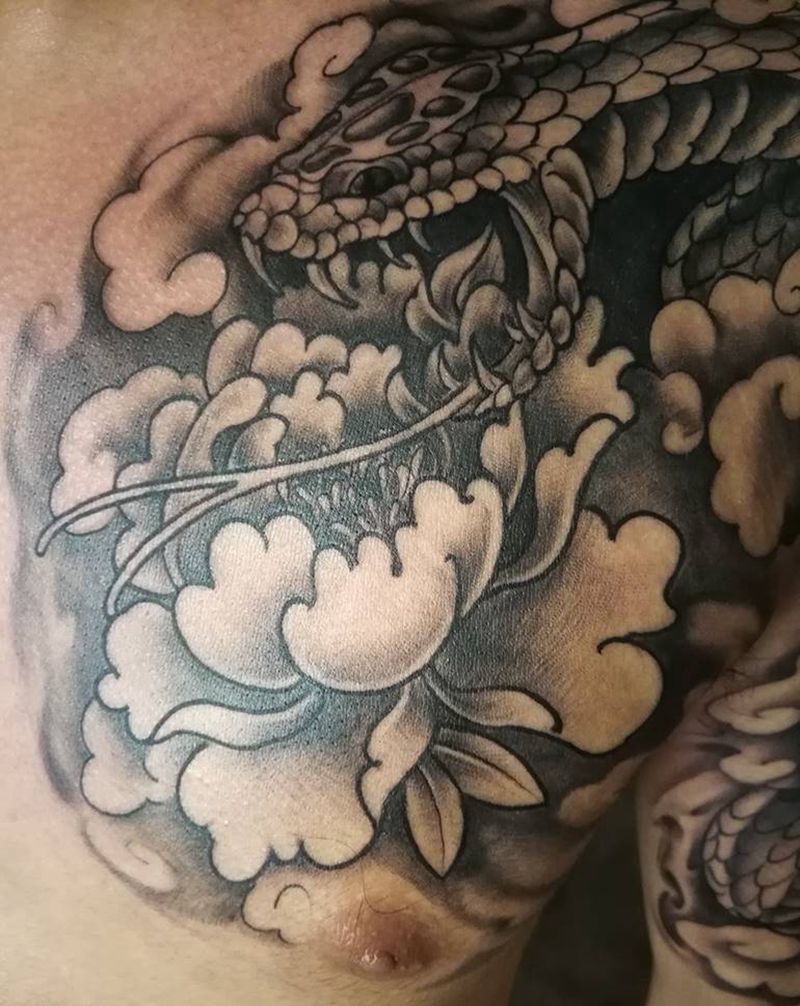 花与蛇纹身图片_胸部手臂新传统纹身图案