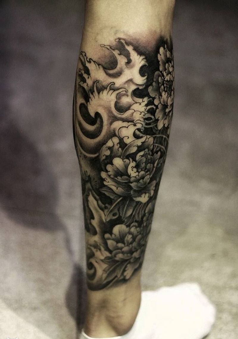 遮盖旧纹身纹身图片_腿部老传统新传统纹身图案