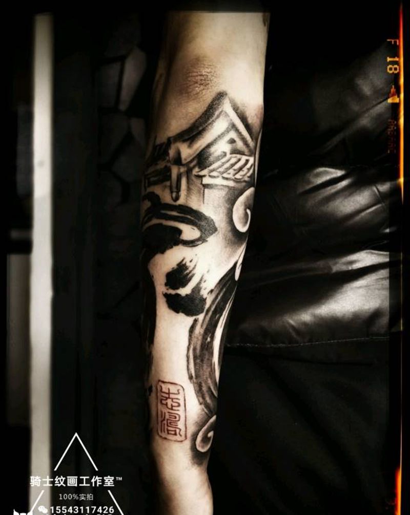 当前位置: 首页 >江苏省苏州市纹身店-骑士纹画纹身图案>水墨包小臂纹身图片_手臂传统国画字符植物成品纹身图案