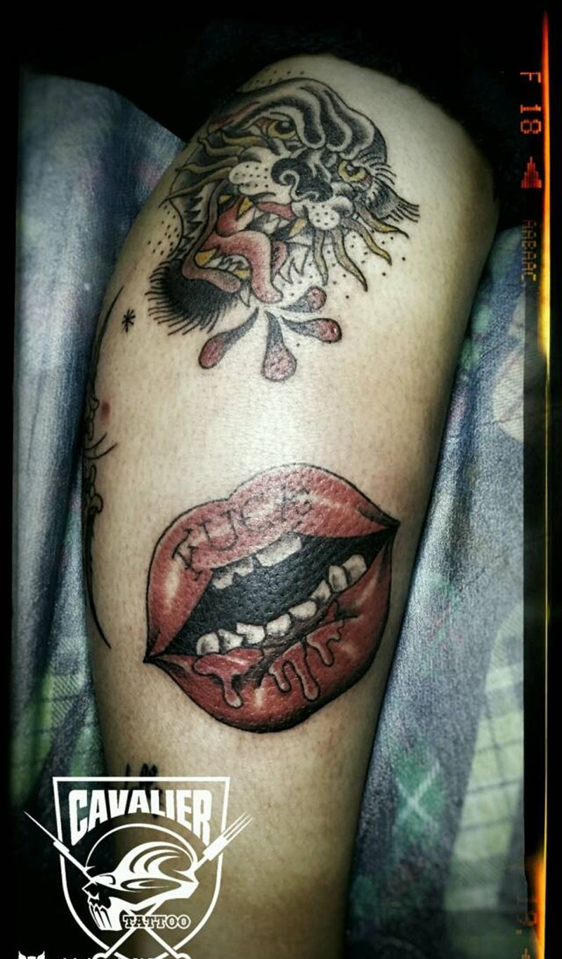 • T包小腿吹火男+阿多福纹身图片_腿部老传统新传统吹火男阿