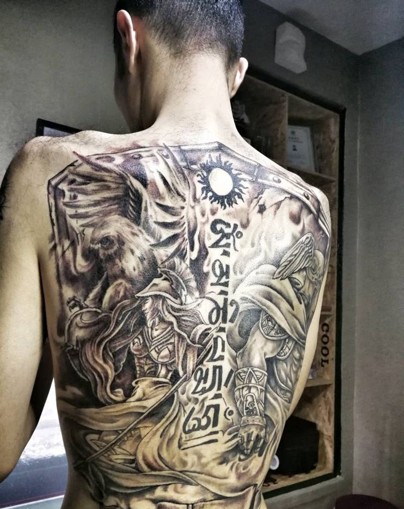 当前位置: 首页 >江苏省苏州市纹身店-骑士纹画纹身图案>满背纹身图片_背部欧美写实字符动物人物鬼神宗教成品纹身图案