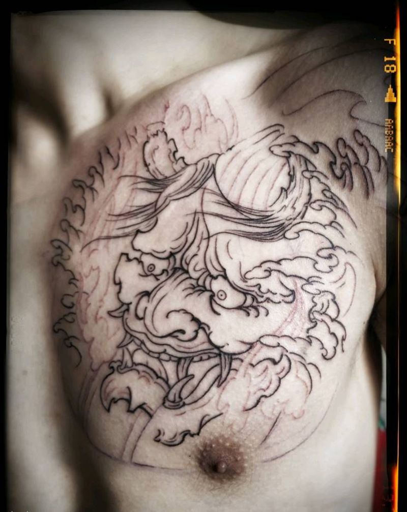 般若纹身图片_胸部传统人物鬼神成品纹身图案