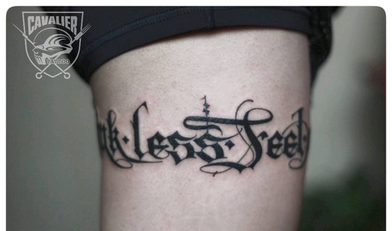 当前位置: 首页 >江苏省苏州市纹身店-骑士纹画纹身图案>哥特式英文,腿环(半包)纹身图片_腿部欧美清新字符成品纹身图案