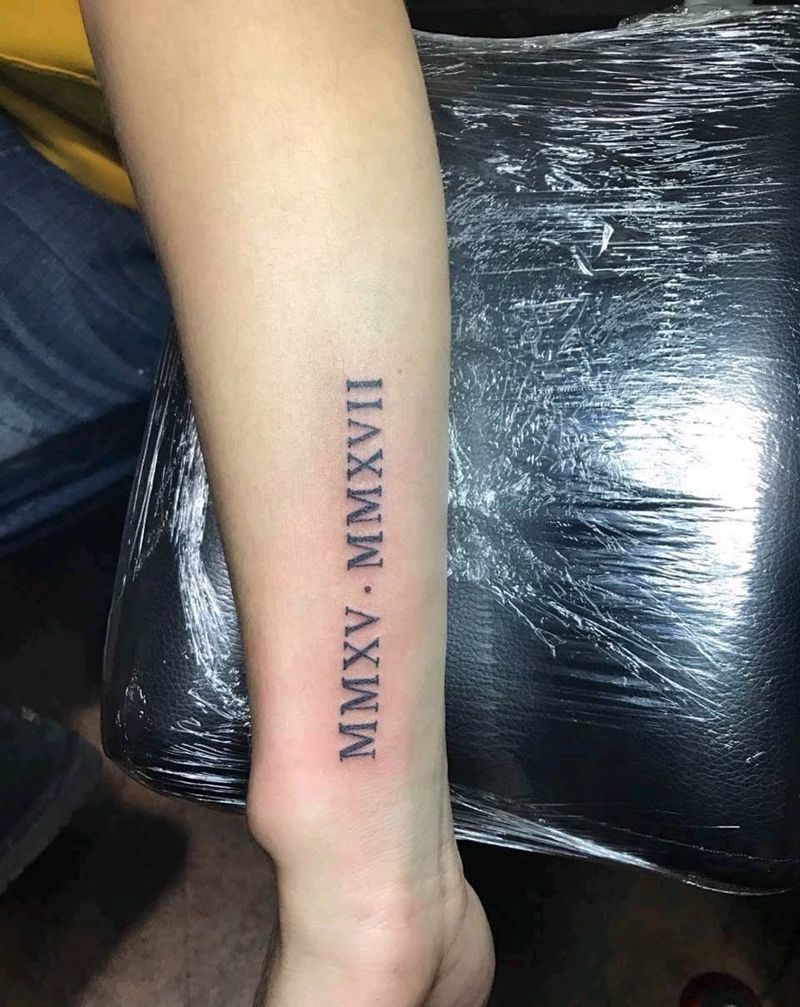 情侣款 罗马数字纹身图片_手臂清新字符成品纹身图案