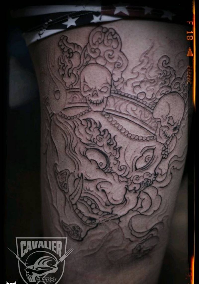 当前位置: 首页 >江苏省苏州市纹身店-骑士纹画纹身图案>大黑天纹身图片_腿部传统人物鬼神宗教成品纹身图案
