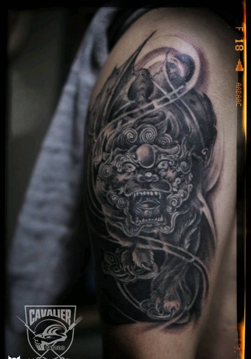 大臂遮盖纹身图片_手臂传统动物鬼神成品纹身图案