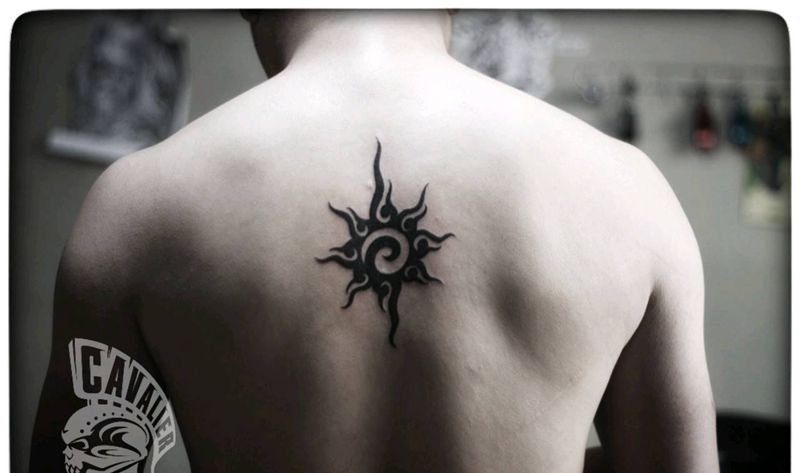 太阳小图腾纹身图片_背部传统几何图腾成品纹身图案