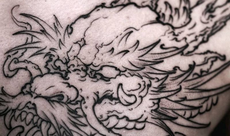 当前位置: 首页 >江苏省苏州市纹身店-骑士纹画纹身图案>龙头线条纹身图片_胸部传统国画动物鬼神图腾宗教原创成品纹身图案