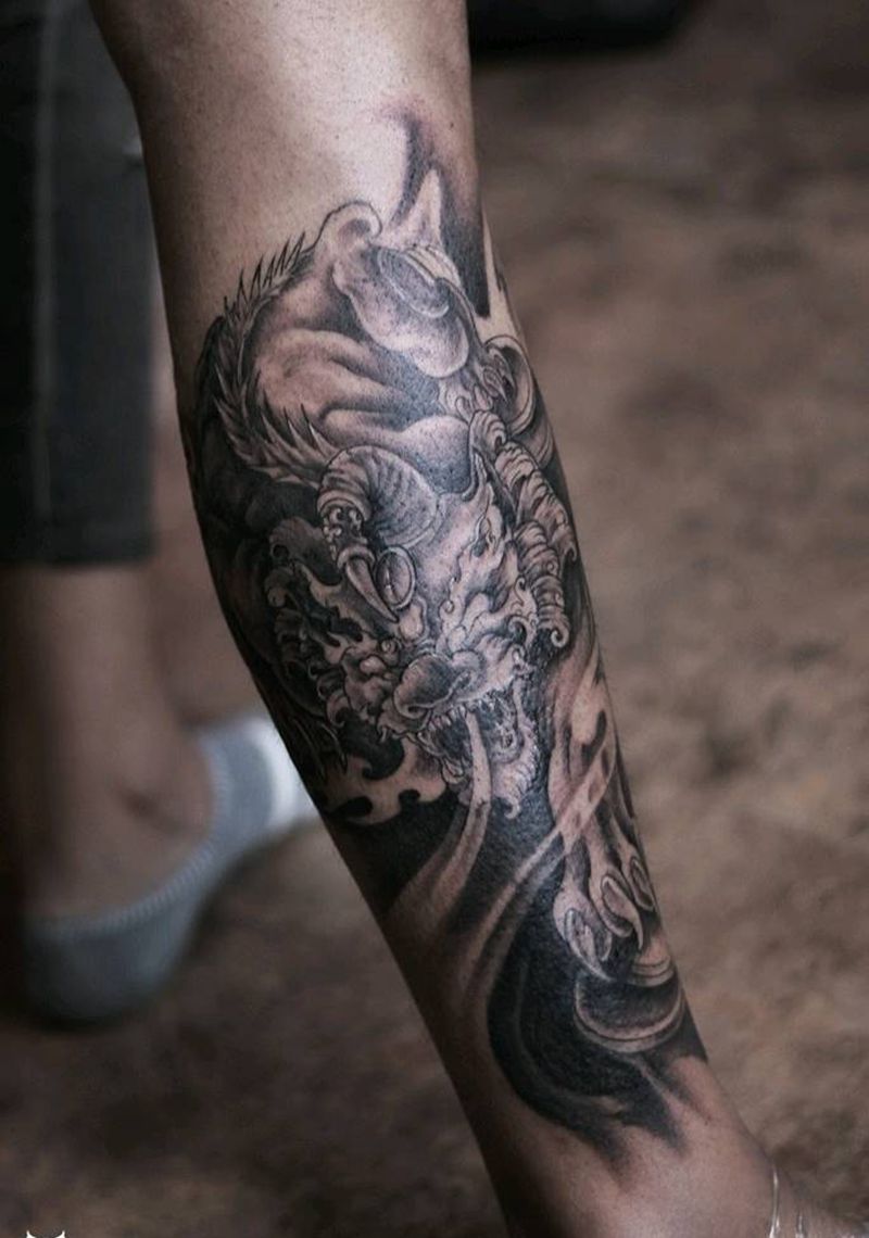 貔貅纹身图片_腿部传统鬼神宗教原创成品纹身图案