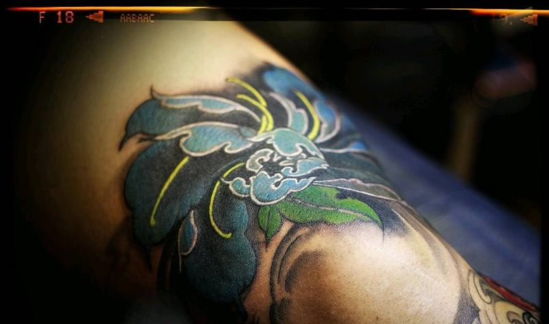 • T网红王老大花腿龙纹身图片_腿部新传统纹身图案