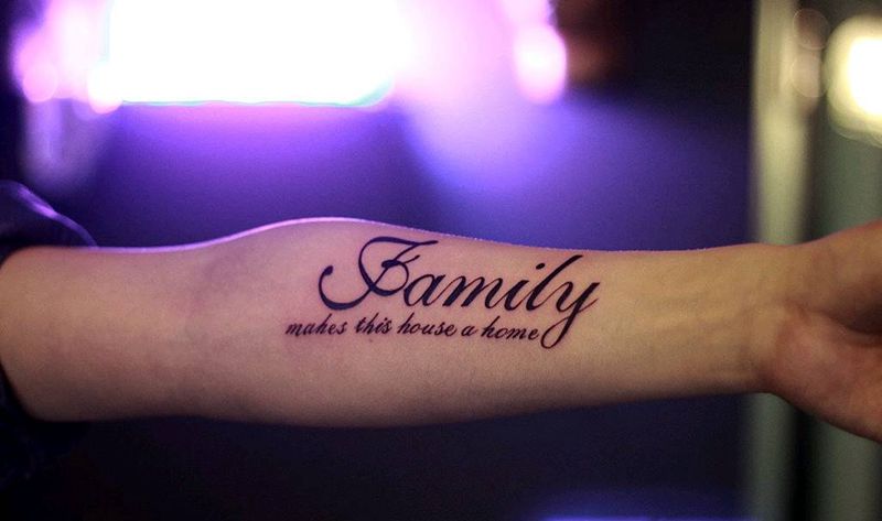 当前位置: 首页 >江苏省苏州市纹身店-骑士纹画纹身图案>Family 爱家的男人纹身图片_手臂花体字纹身图案