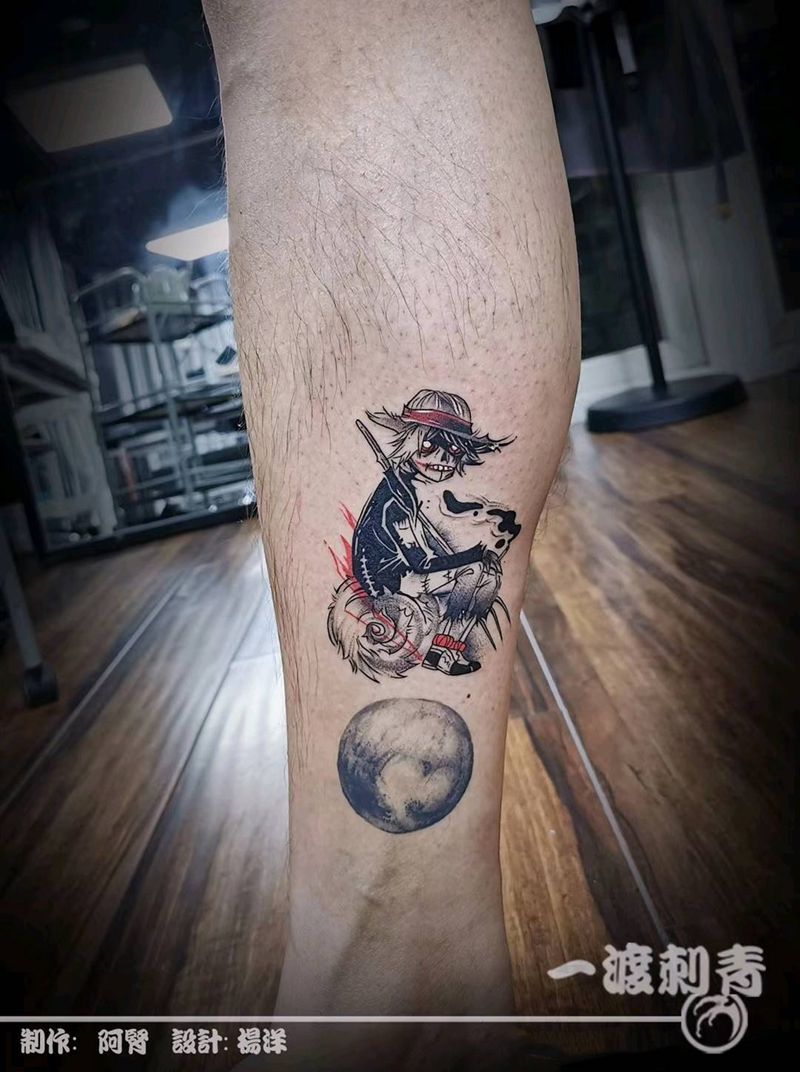 当前位置: 首页 >江苏省苏州市纹身店-苏州一渡刺青纹身馆纹身图案>稻草人纹身图片_腿部New School水墨纹身图案