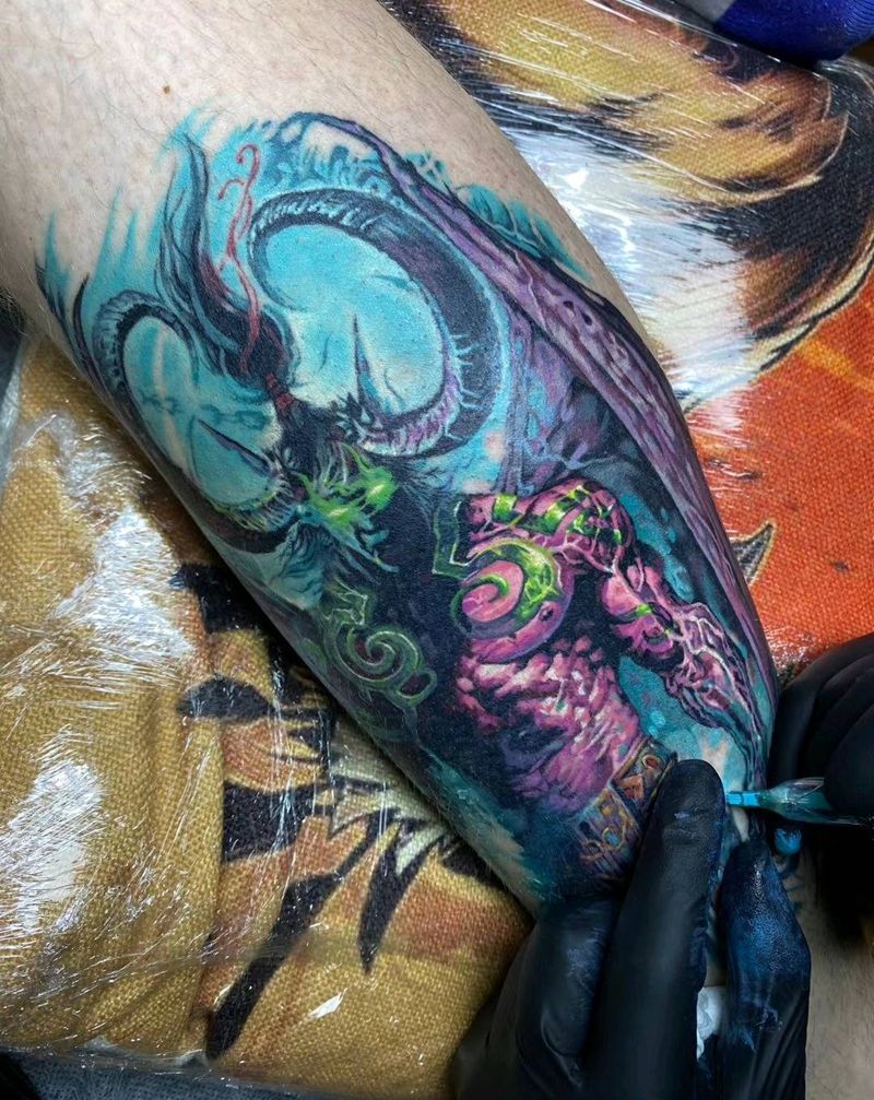 伊利丹纹身图片_腿部欧美写实纹身图案