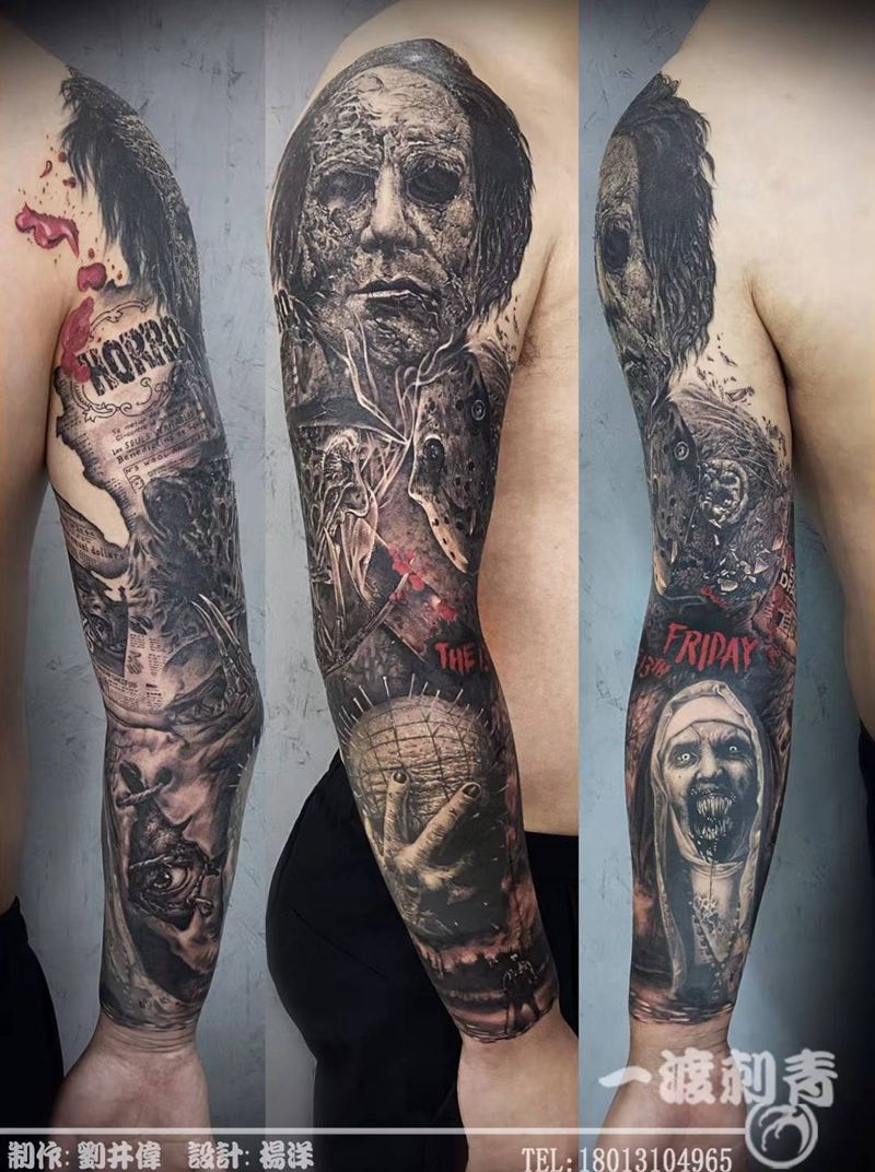 恐怖花臂纹身图片_手臂欧美写实纹身图案