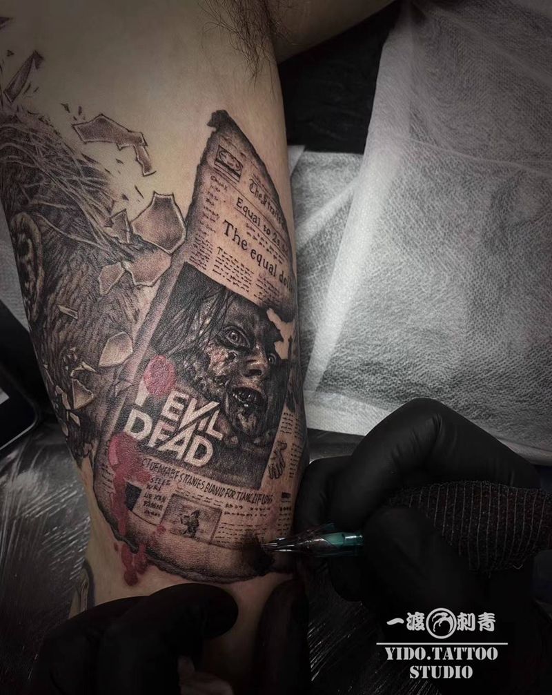 恐怖花臂纹身图片_手臂欧美写实纹身图案