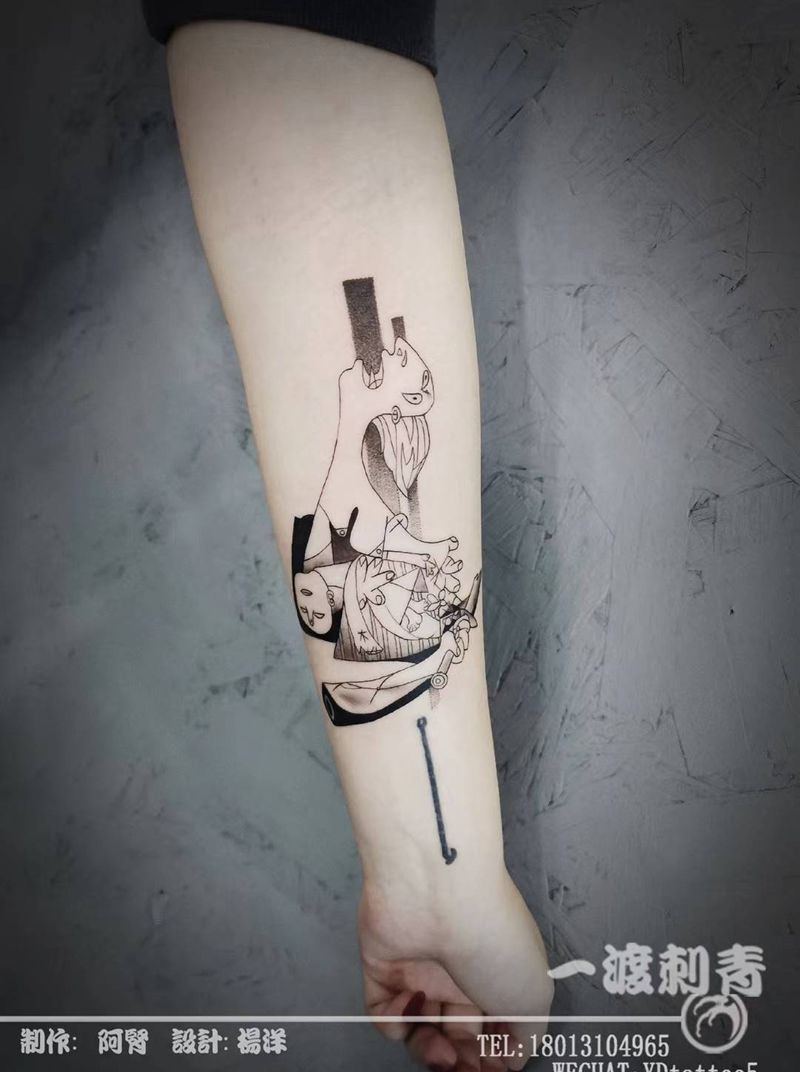 当前位置: 首页 >江苏省苏州市纹身店-苏州一渡刺青纹身馆纹身图案>格尔尼卡纹身图片_手臂点刺New School纹身图案
