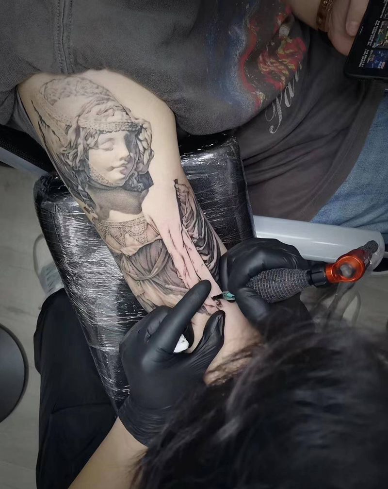 当前位置: 首页 >江苏省苏州市纹身店-苏州一渡刺青纹身馆纹身图案>雕塑纹身图片_手臂欧美写实纹身图案