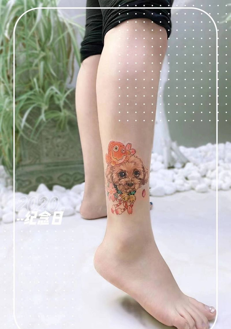 当前位置: 首页 >江苏省苏州市纹身店-苏州一渡刺青纹身馆纹身图案>狗狗纹身图片_腿部New School水彩纹身图案
