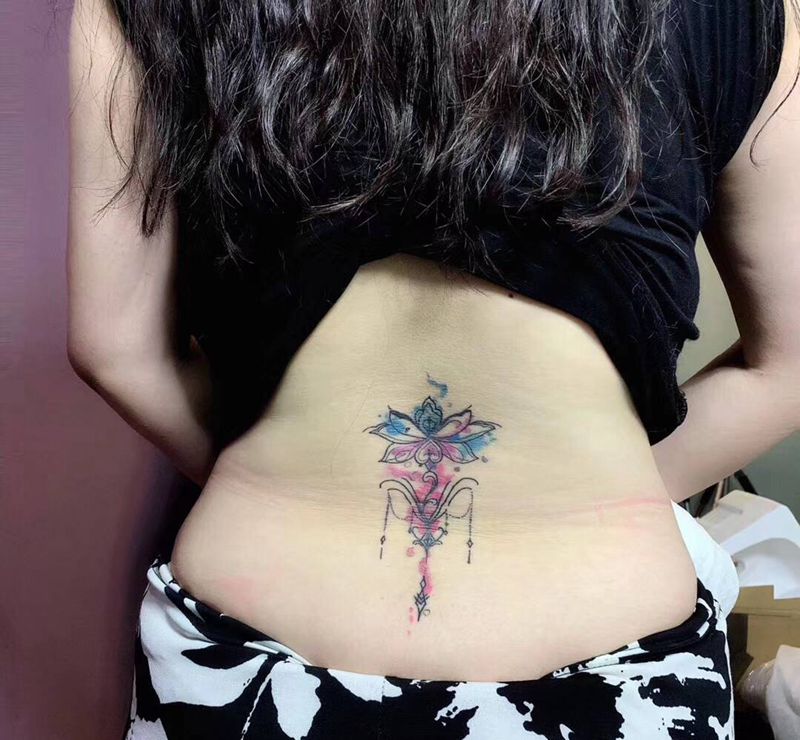 水彩修改纹身图片_臀部背部水彩纹身图案
