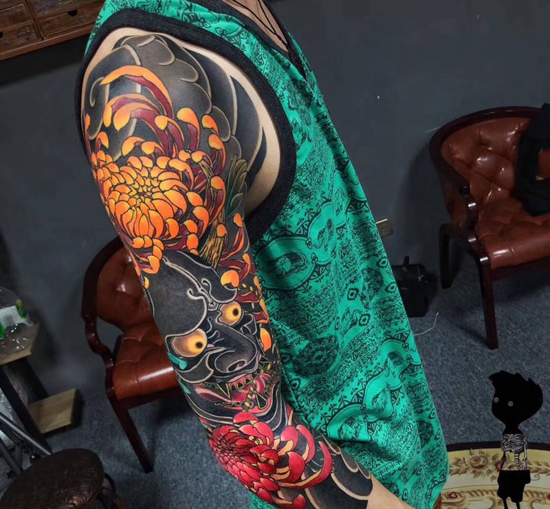 当前位置: 首页 >江苏省苏州市纹身店-谛酉刺青纹身图案>老传统菊花般若七分袖纹身图片_手臂老传统纹身图案