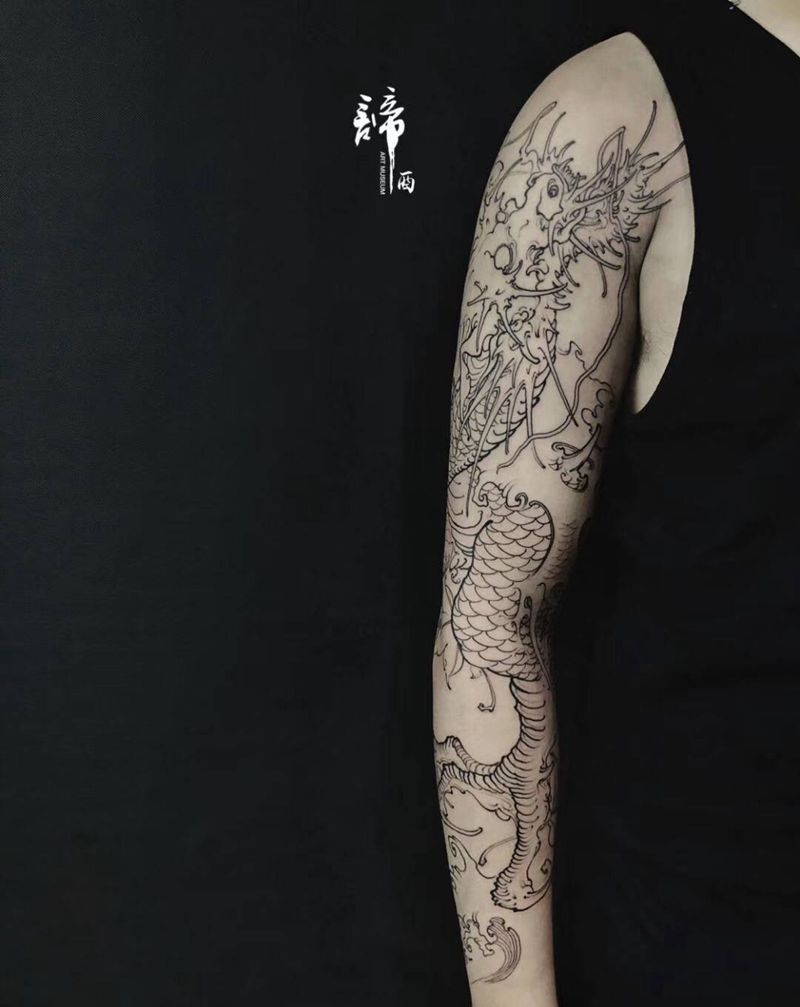 新传统龙花臂作品纹身图片_手臂新传统纹身图案