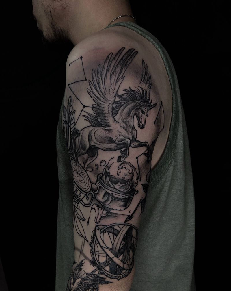 当前位置: 首页 >江苏省苏州市纹身店-谛酉刺青纹身图案>凯哥花臂慢慢拼纹身图片_手臂Old School纹身图案