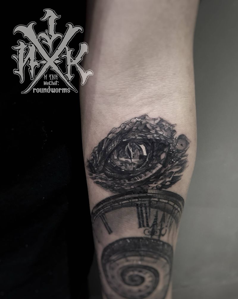 小臂 暗黑写实 龙眼纹身图片_手臂欧美写实龙眼兽瞳眼睛纹身图案
