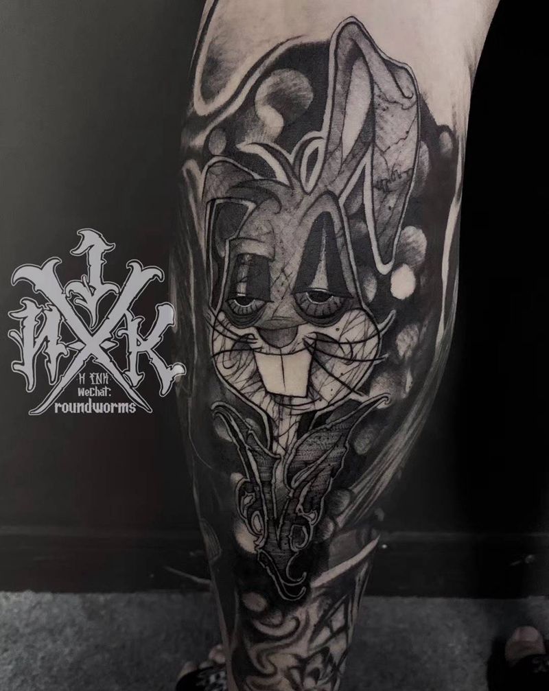 当前位置: 首页 >江苏省苏州市纹身店-X ink tattoo studio纹身图案>小腿后侧 兔八哥纹身图片_腿部欧美写实New School暗黑兔八哥花腿纹身图案