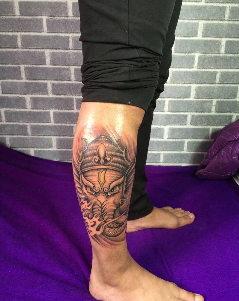 • T网红王老大花腿龙纹身图片_腿部新传统纹身图案
