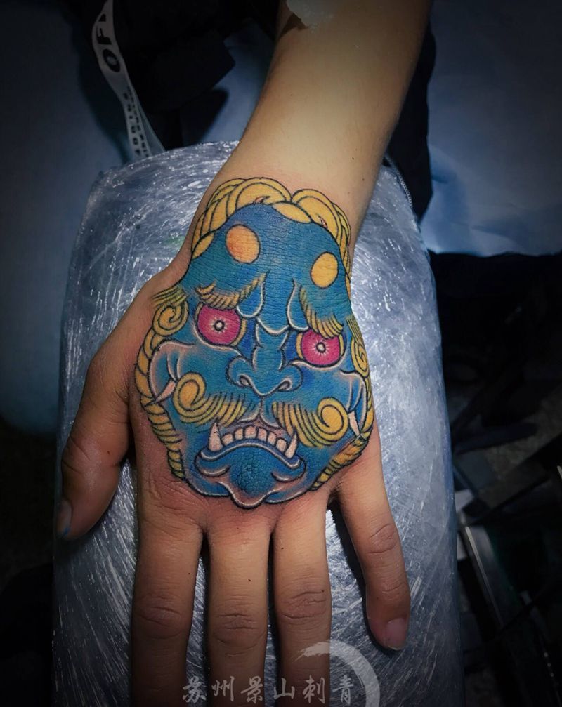 当前位置: 首页 >江苏省苏州市纹身店-苏州景山刺青纹身图案>花手唐狮纹身图片_手部纹身图案