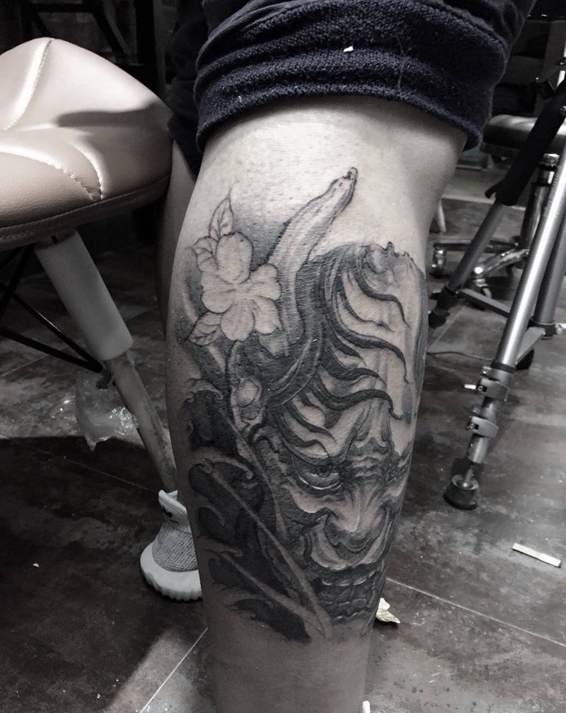 • T网红王老大花腿龙纹身图片_腿部新传统纹身图案