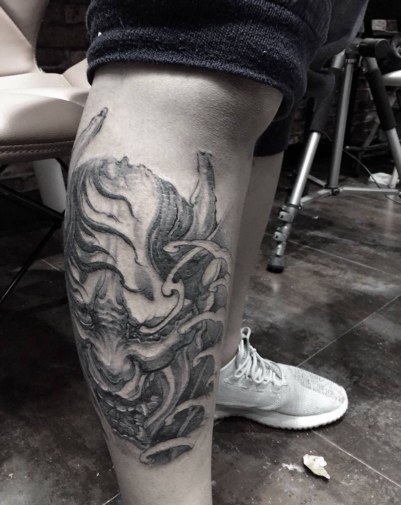• T网红王老大花腿龙纹身图片_腿部新传统纹身图案