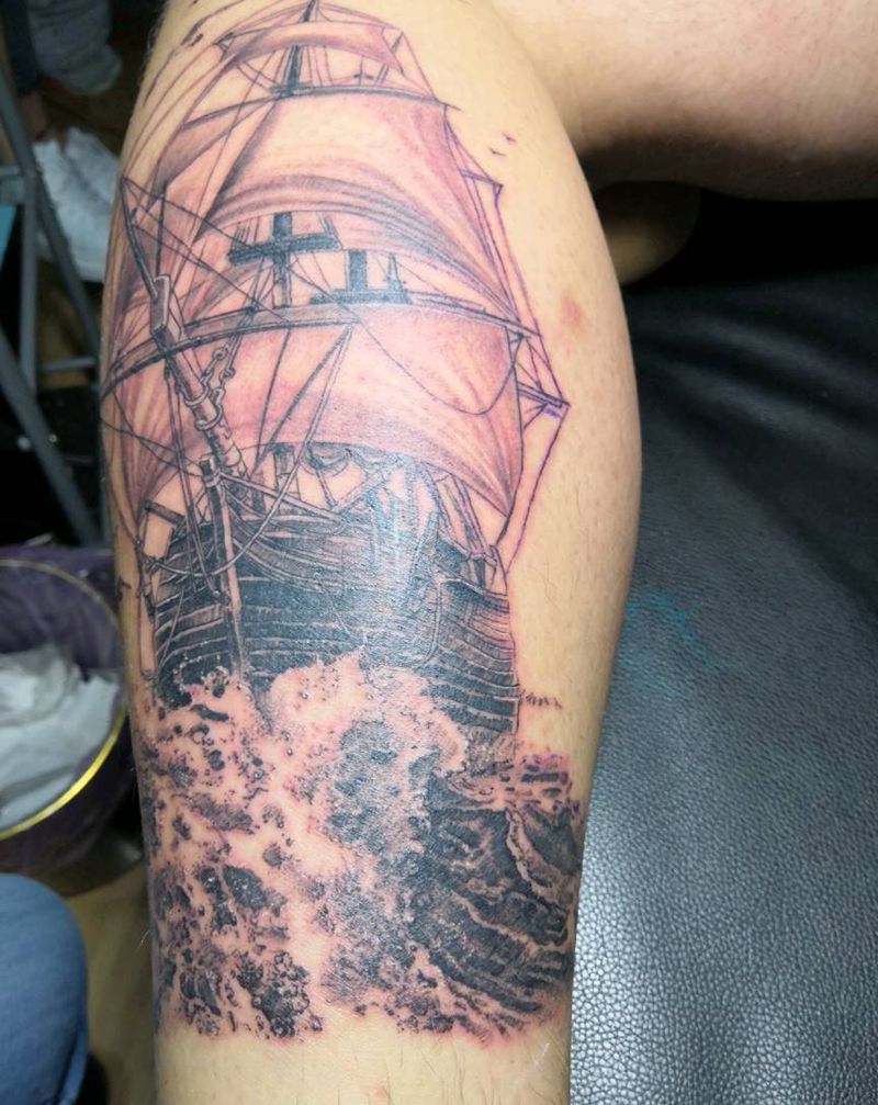 当前位置: 首页 >江苏省苏州市纹身店-鬼舞刺青·旗舰店纹身图案>又双叒见帆船纹身图片_腿部欧美写实帆船成品纹身图案