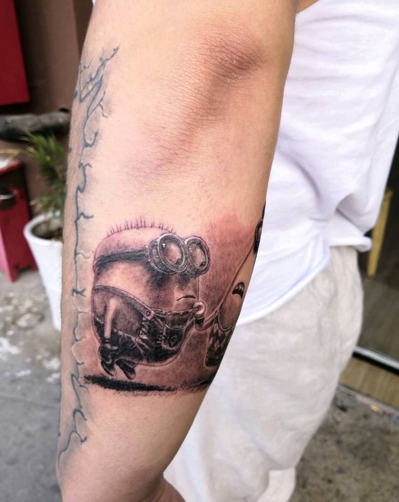 当前位置: 首页 >江苏省苏州市纹身店-鬼舞刺青·旗舰店纹身图案>小黄人~纹身图片_手臂欧美写实纹身图案