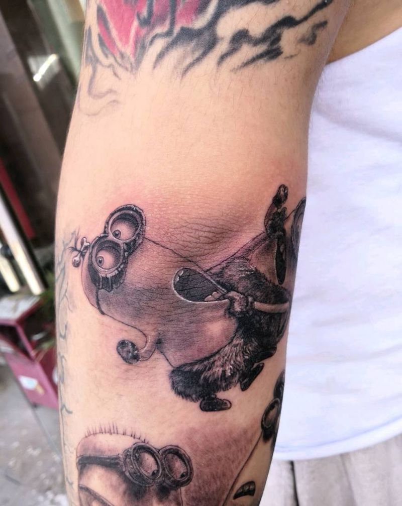 小黄人~纹身图片_手臂欧美写实纹身图案