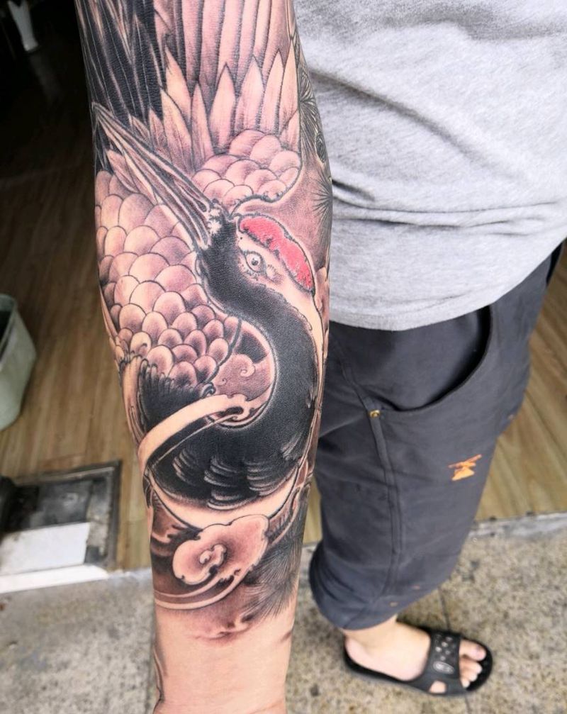当前位置: 首页 >江苏省苏州市纹身店-鬼舞刺青·旗舰店纹身图案>鹤~纹身图片_手臂传统习俗国画动物植物原创成品纹身图案