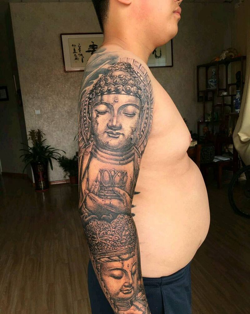 当前位置: 首页 >江苏省苏州市纹身店-鬼舞刺青·旗舰店纹身图案>石雕花臂佛纹身图片_肩部手臂欧美写实人物宗教原创成品纹身图案