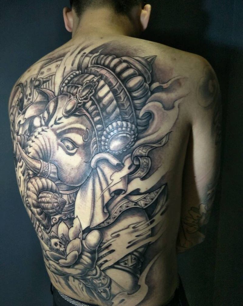 满背象神…~纹身图片_背部传统鬼神宗教成品纹身图案