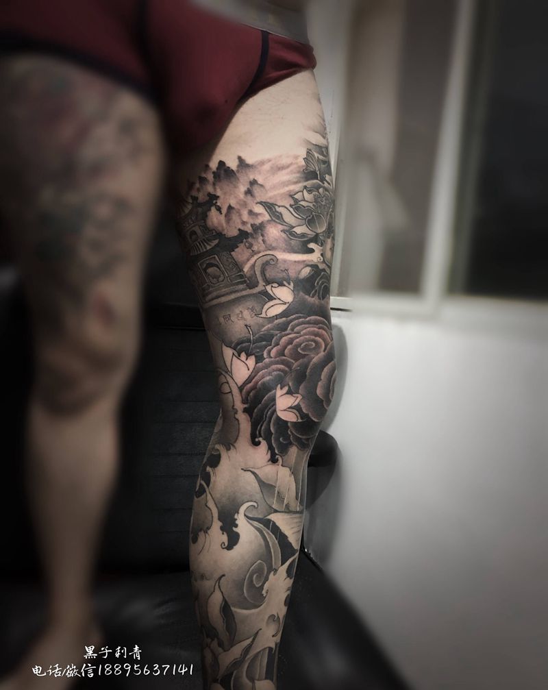 • T网红王老大花腿龙纹身图片_腿部新传统纹身图案
