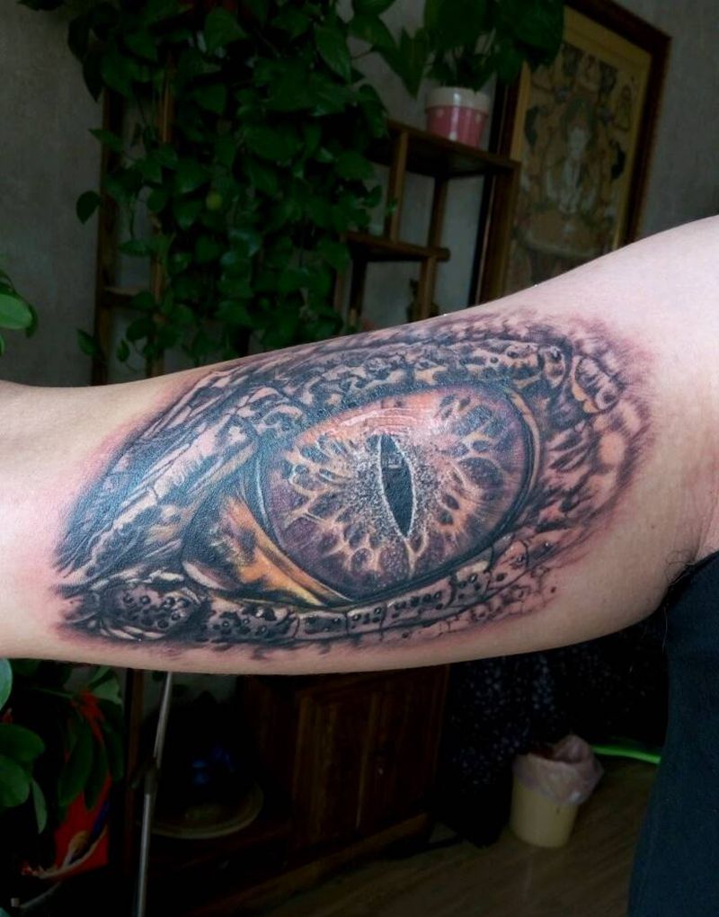 鳄鱼眼睛纹身图片_手臂欧美写实动物成品纹身图案